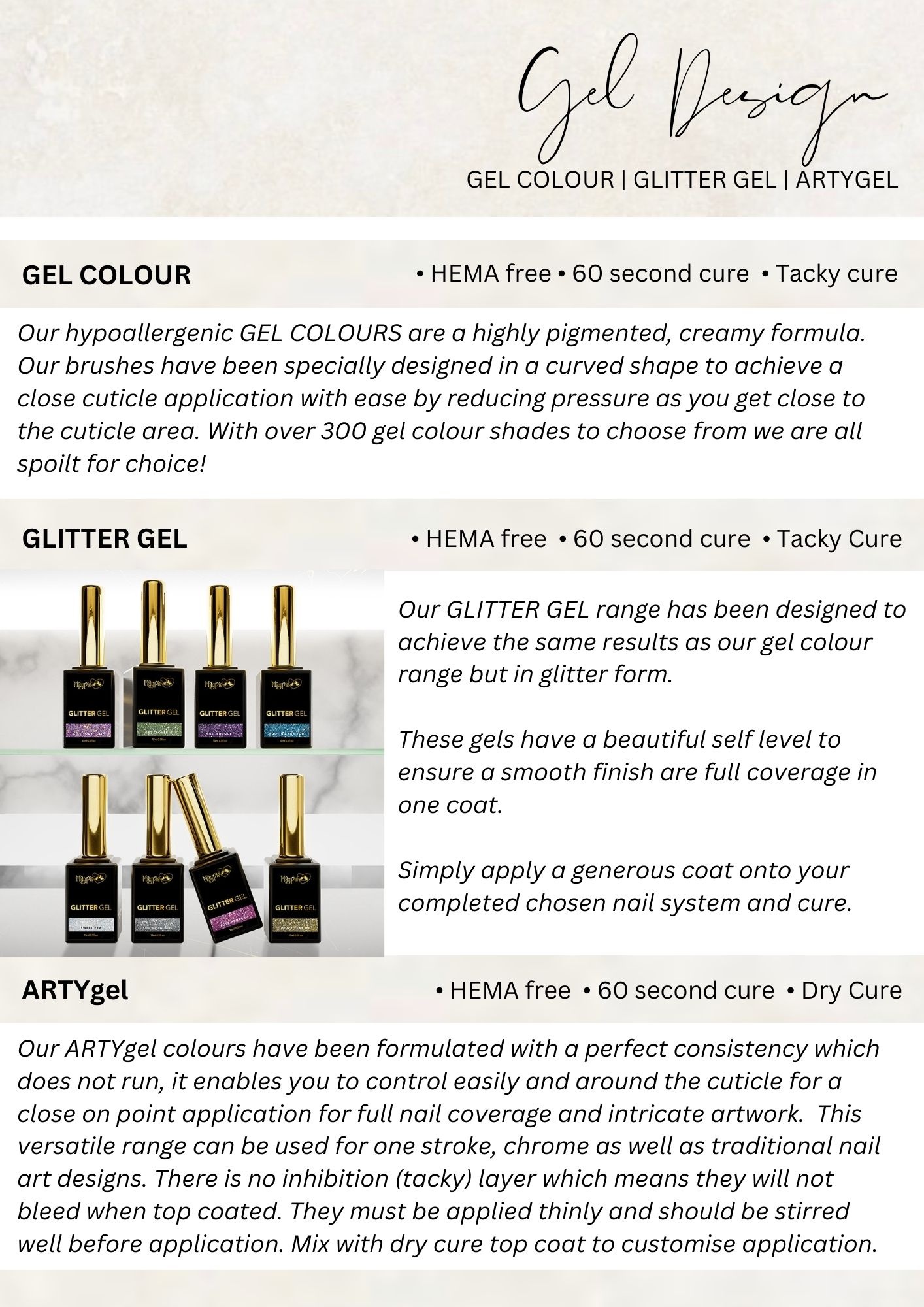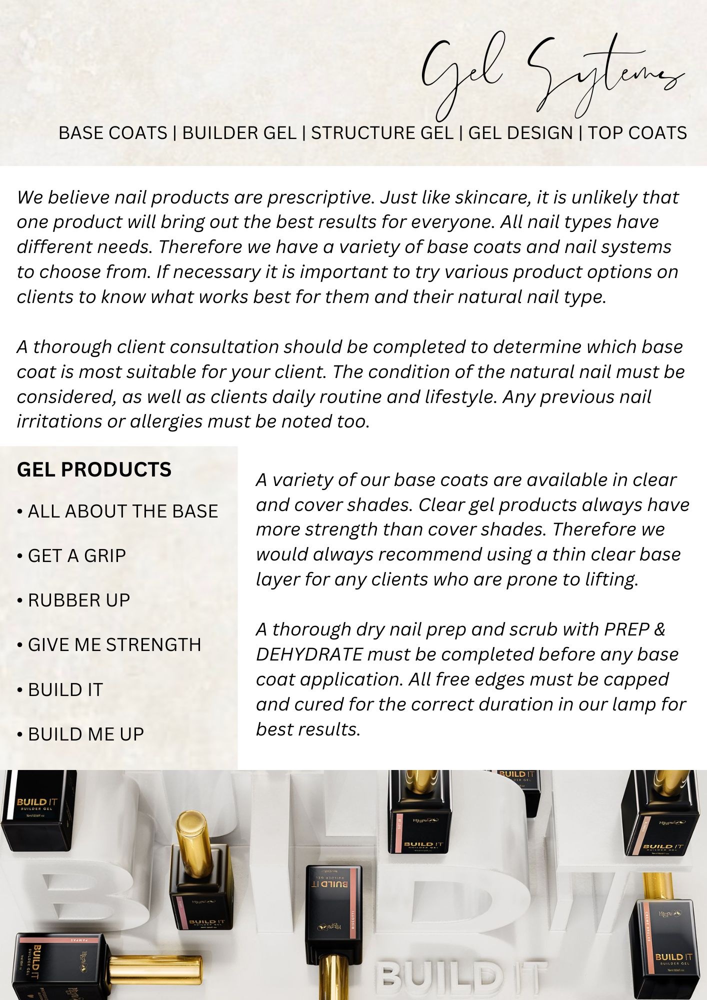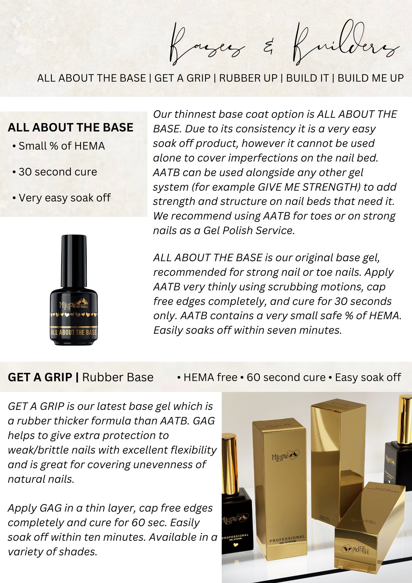 Base Coats, Builder Gel, Structure Gel, Design Gel, Top Coat